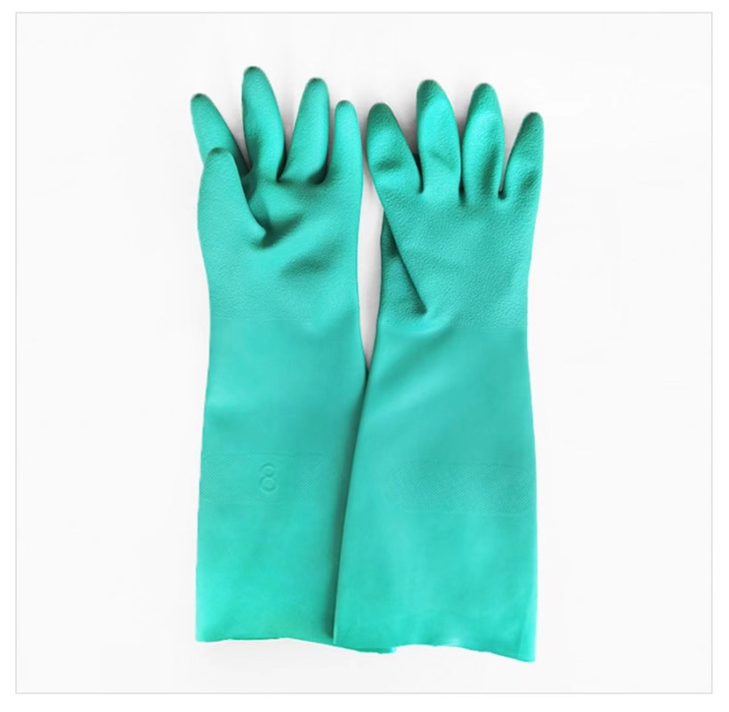Неподдержанные перчатки химической устойчивости, иногда вызывали перчатки домочадца, обеспечивают хорошее решение для задач требуя умеренного химиката
